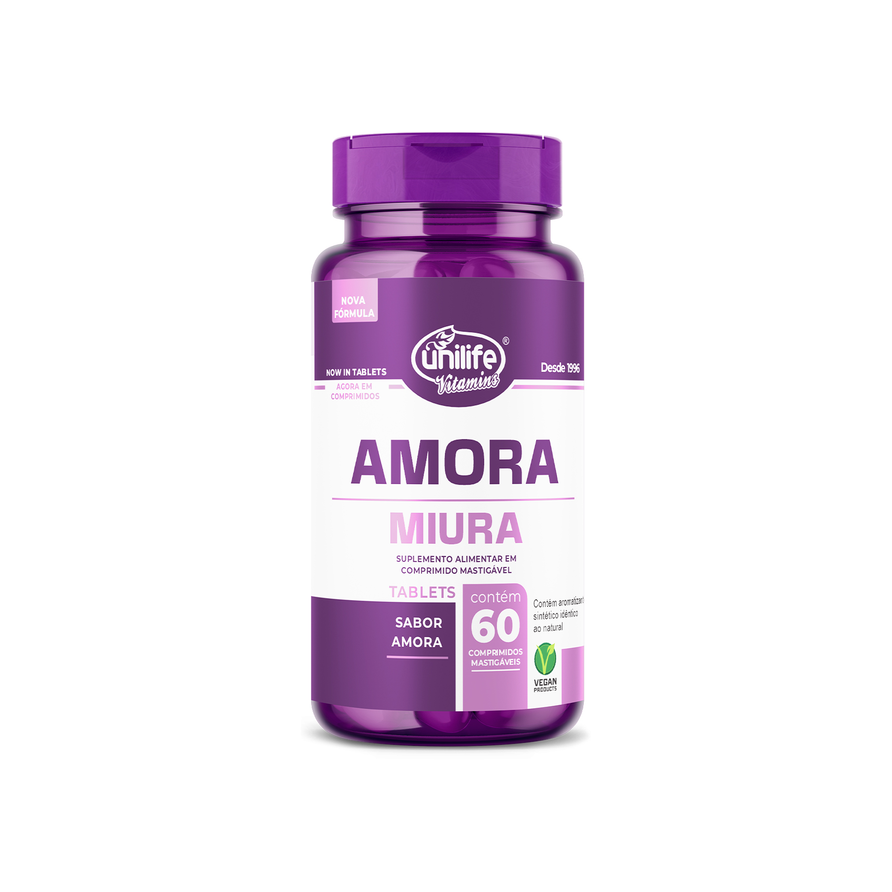 É um suplemento VEGANO em forma de comprimidos, desenvolvido a partir da amora e vitaminas. Não contém glúten e lactose.