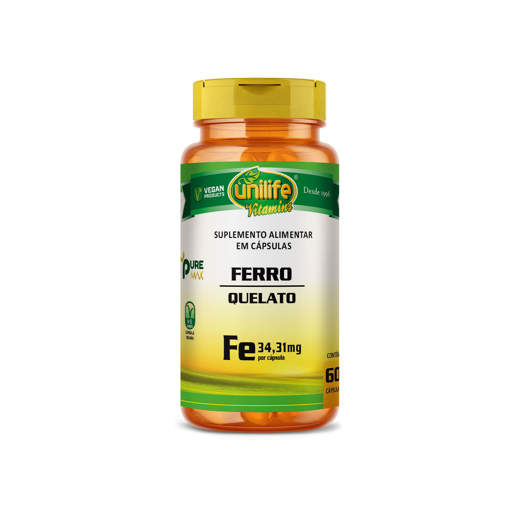 INGREDIENTES: Bisglicinato ferroso, amido de milho e antiumectante estearato de magnésio. Cápsula: Gelatina vegetal e água purificada.