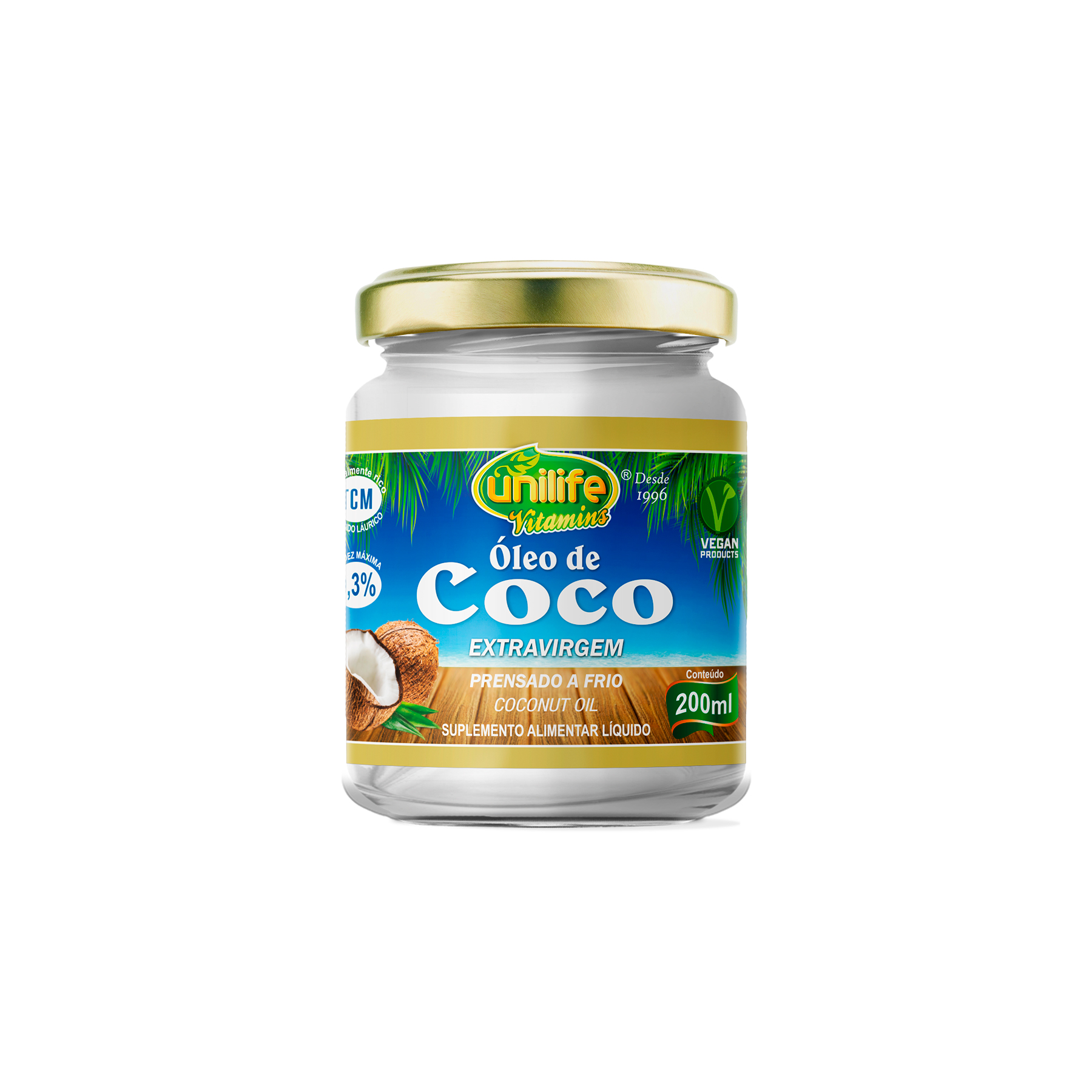 É um suplemento 100% PURO, VEGANO, EXTRAVIRGEM, desenvolvido a partir de óleo de coco prensado a frio. Não tem glúten e lactose.