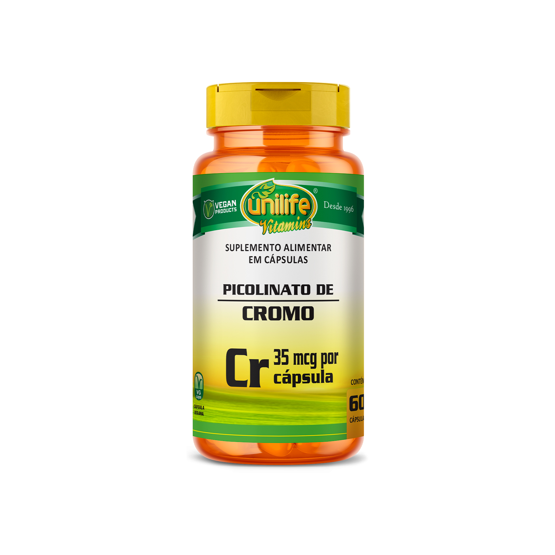 É um suplemento VEGANO, desenvolvido a partir de cromo com ácido picolínico. Sem lactose e glúten.